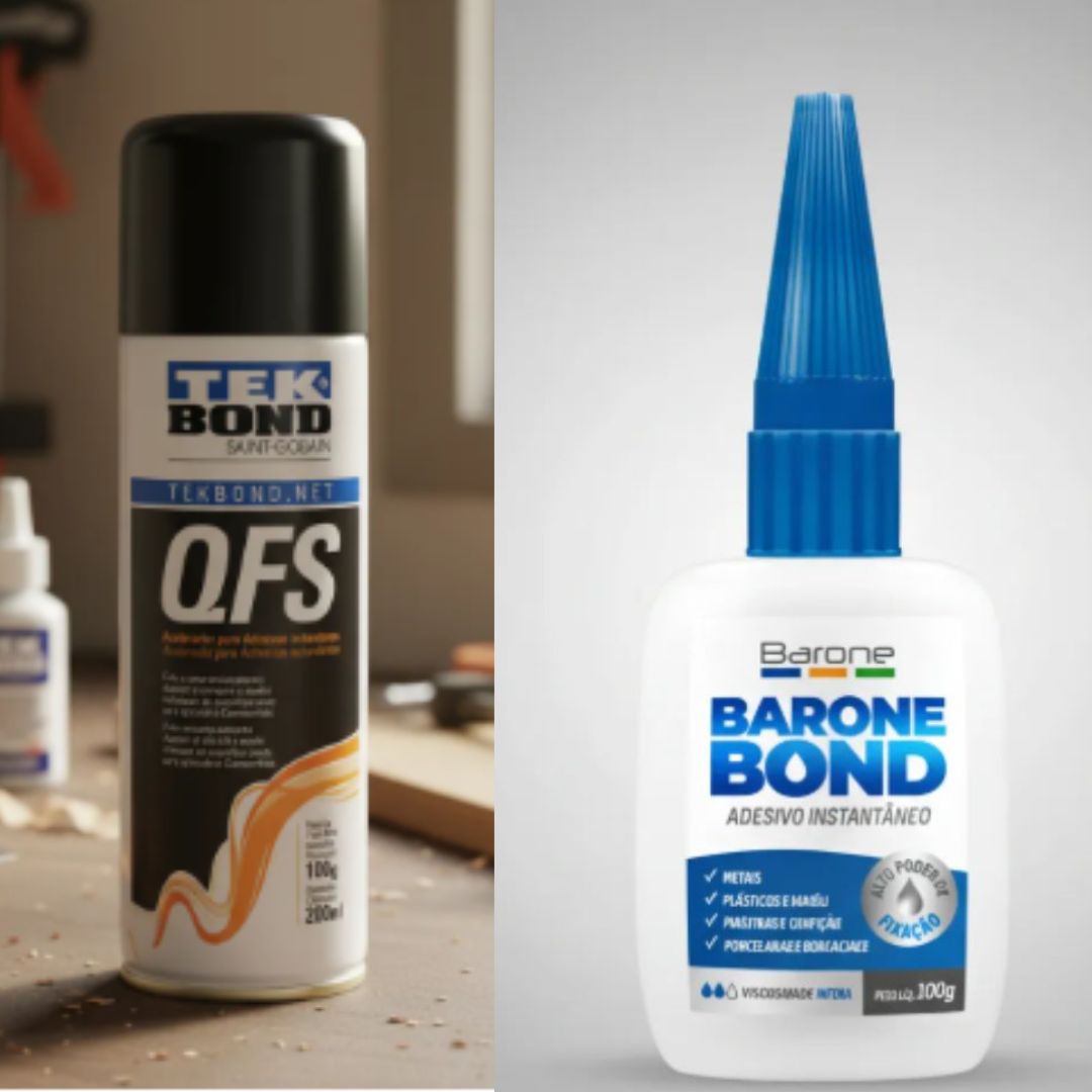 KIT: 1cola instatanea 100g + 1 Acelerador De Cianocrilato Qfs Tek Bond 200ml Transaparente.
