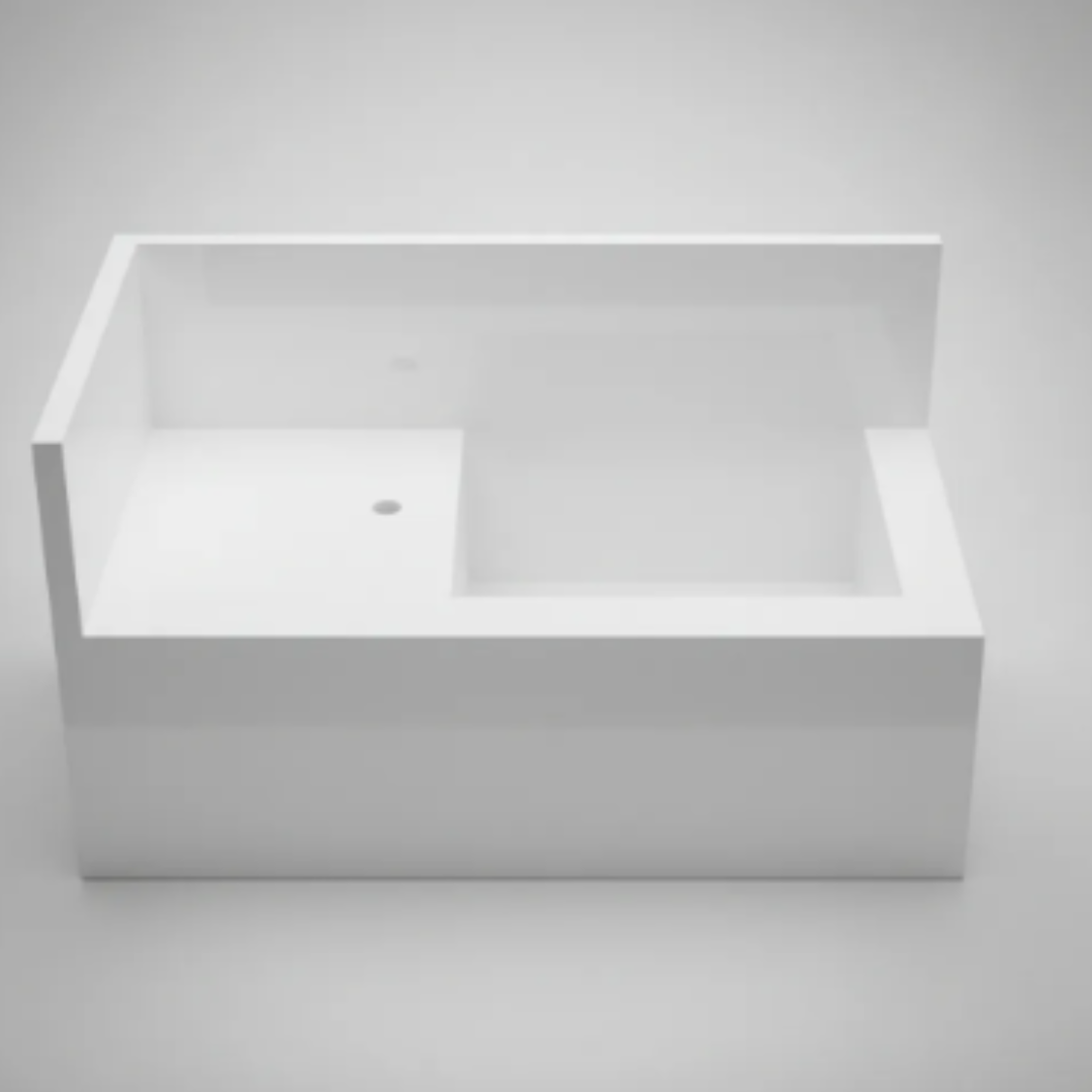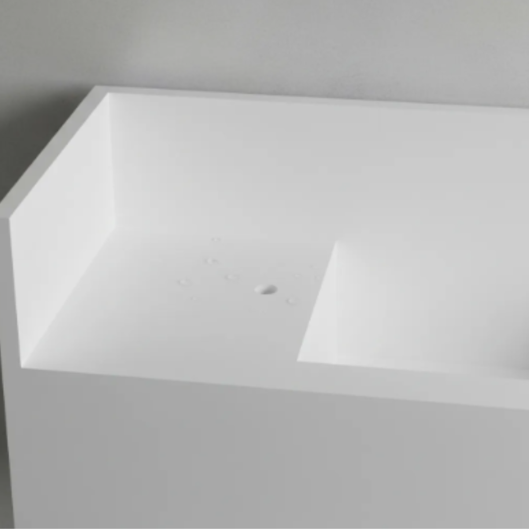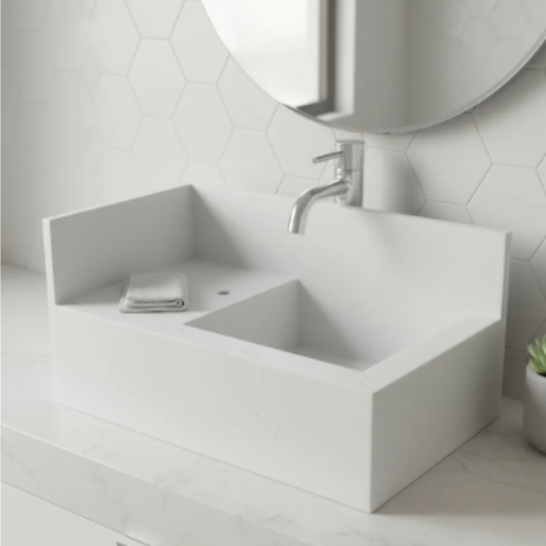 a cuba esculpida possui 60 cm de largura, 30 cm de profundidade e 20 cm de altura ( saia ) acabamento dos dois lados, podendo ser usado tanto numa parede direita ou esquerda.