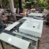 este anuncio é referente a: 1 Cuba Esculpida em porcelanato , acabamento das meias esquadrias todo em massa epoxi, não encarde e nem solta, muito mais resistente do que os acabamentos em massa plastica ,Incluso uma valvula de metal e um PU BRANCO. 2 suporte para instalação de bancadas + 1 nicho borda diamante , na medida 0,60 x 0,40 x 0,10 + engate + um sifao + uma torneira de metal.