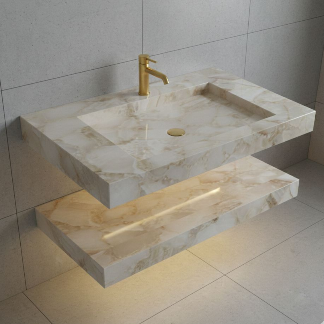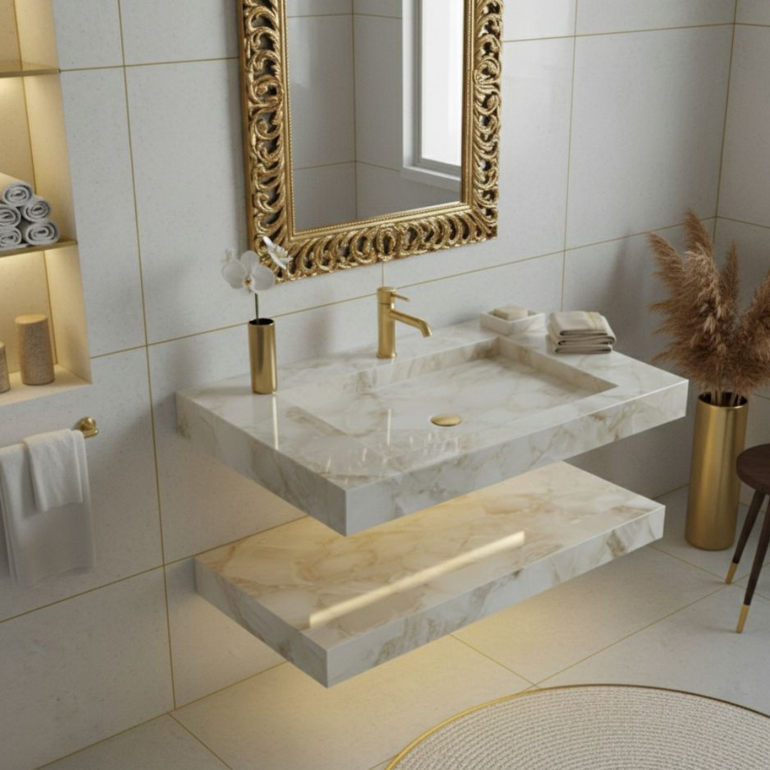 Cuba Esculpida em Porcelanato + Prateleira própio para lavabo.