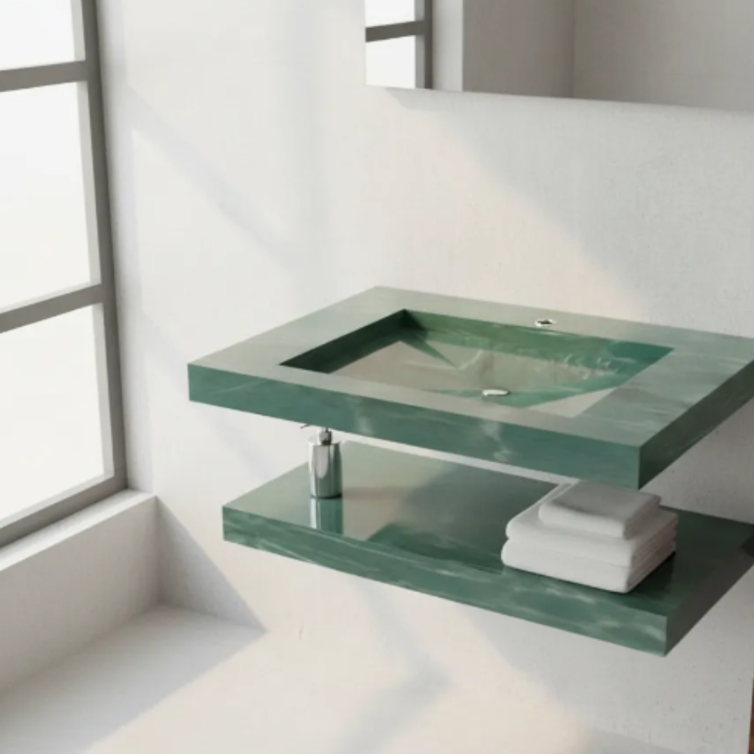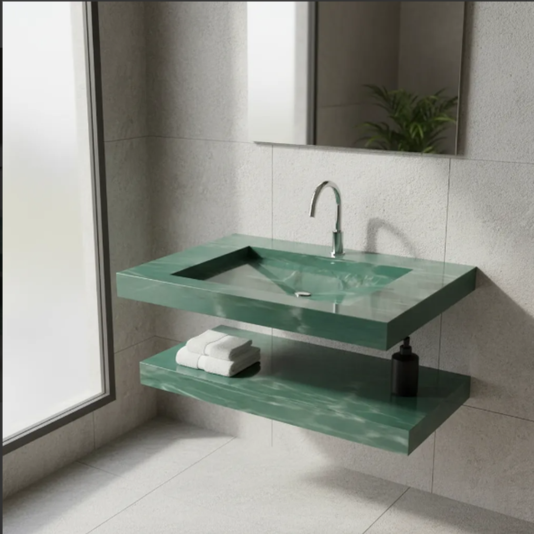 Cuba Esculpida em Porcelanato + Prateleira própio para lavabo.