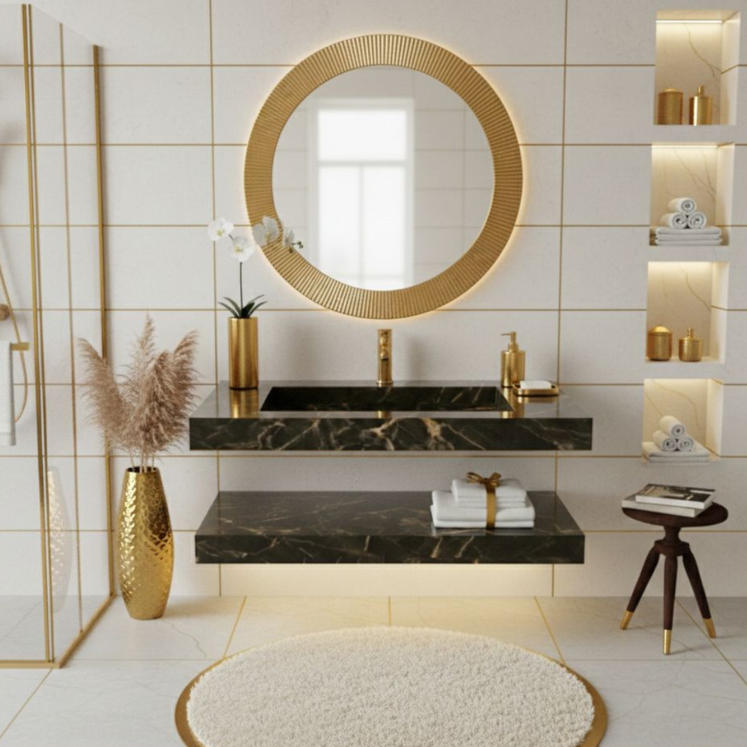 Cuba Esculpida em Porcelanato + Prateleira própio para lavabo.