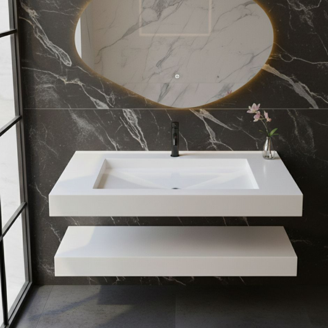 Cuba Esculpida em Porcelanato + Prateleira própio para lavabo.
