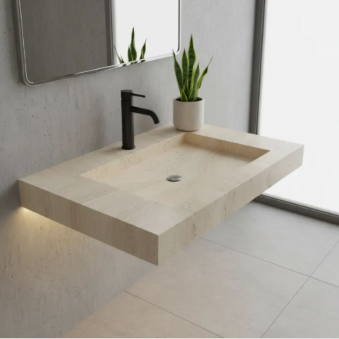 Cuba Esculpida Modelo Raso 0,90 X 0,45 X 0,05 Travertino Acetinado