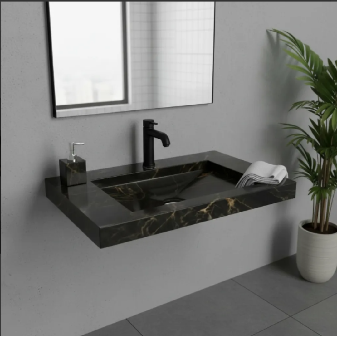 Cuba esculpida em porcelanato, com medida 1,00 x 0,45 x 0,05, com acabamento nos dois lados.