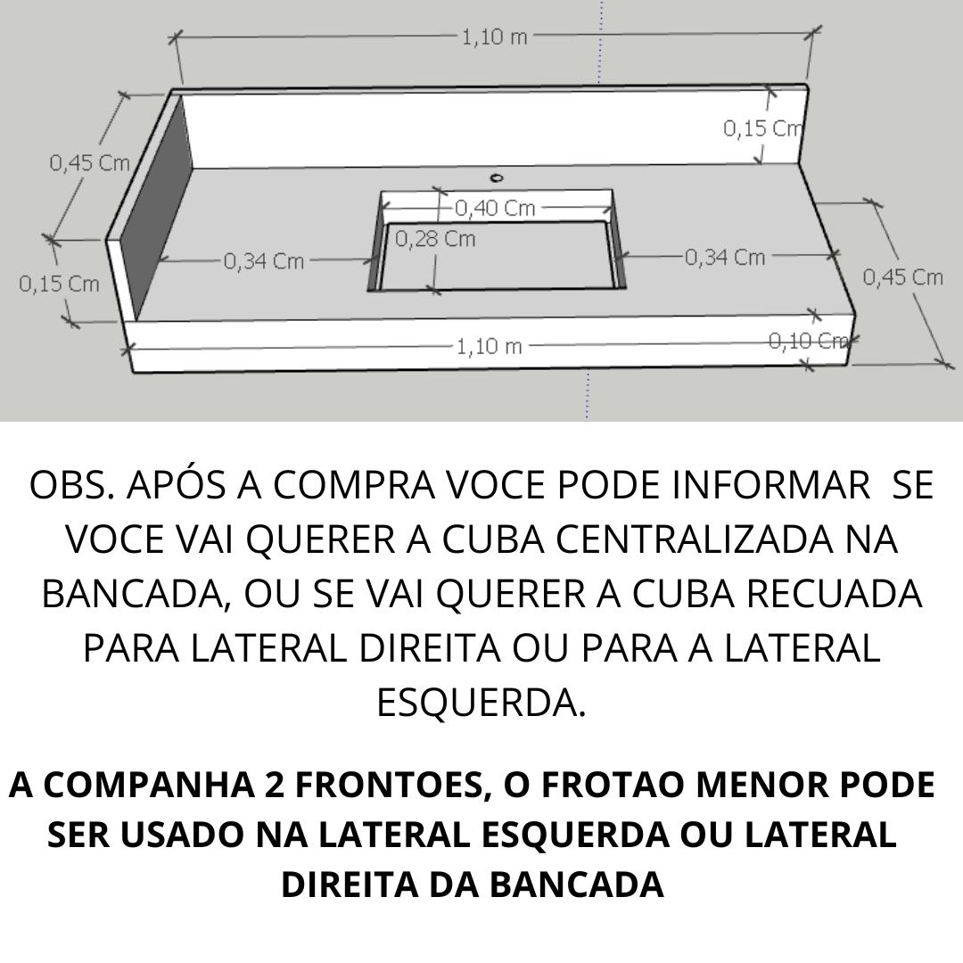 Medidas: 1,10 m (largura) x 45 cm (profundidade) x 0,10 cm (altura da saia)