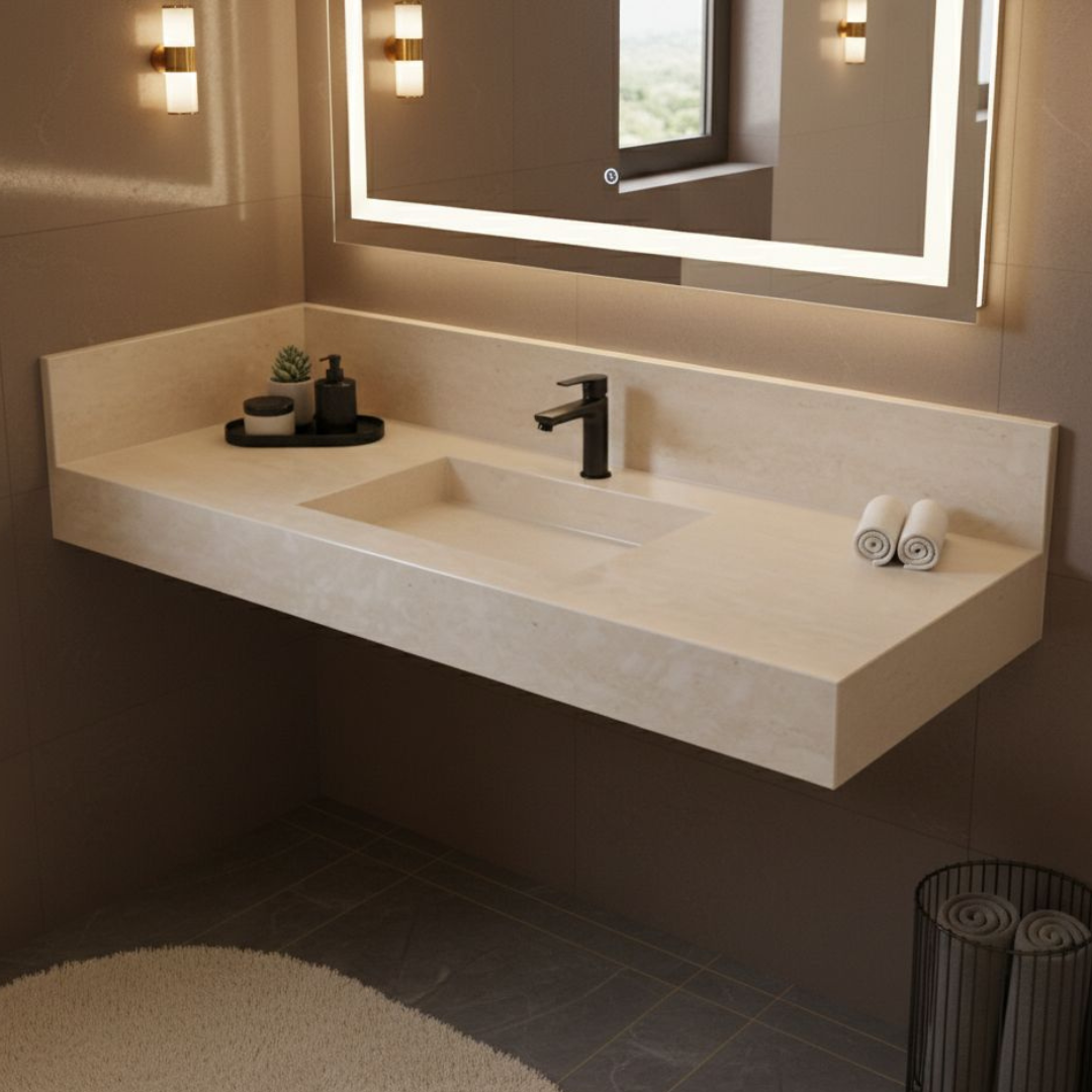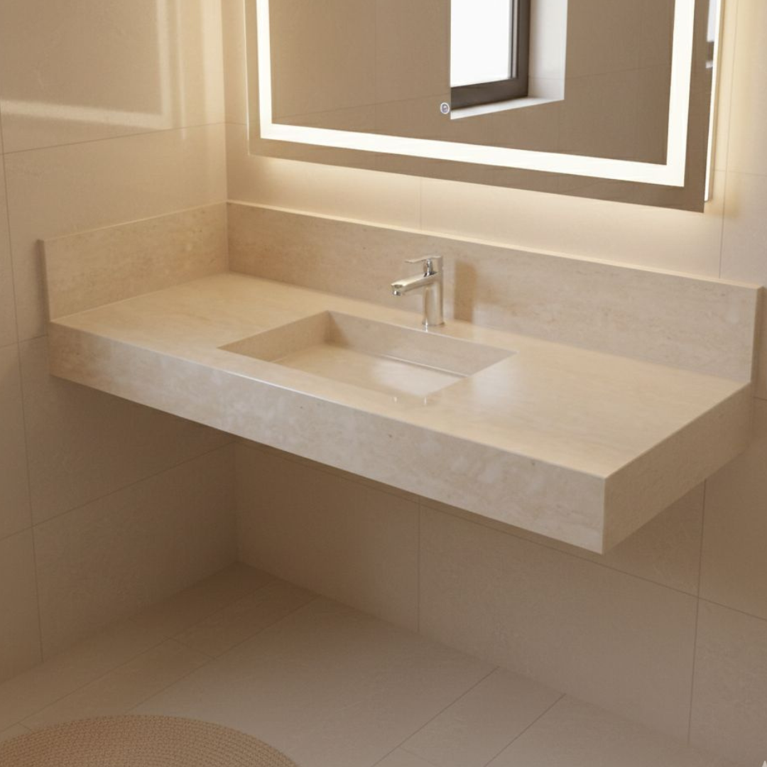 Transforme seu ambiente com uma cuba esculpida em porcelanato Premium, fabricada com acabamento profissional e detalhes superiores.