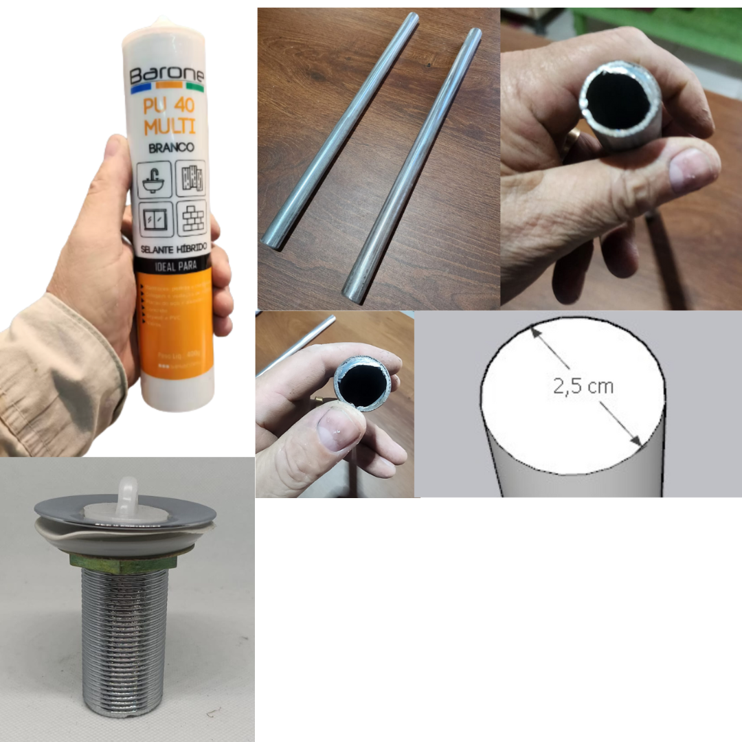Tubo galvanizado de 1” (2,5 cm), 50 cm de comprimento e 450 g cada.