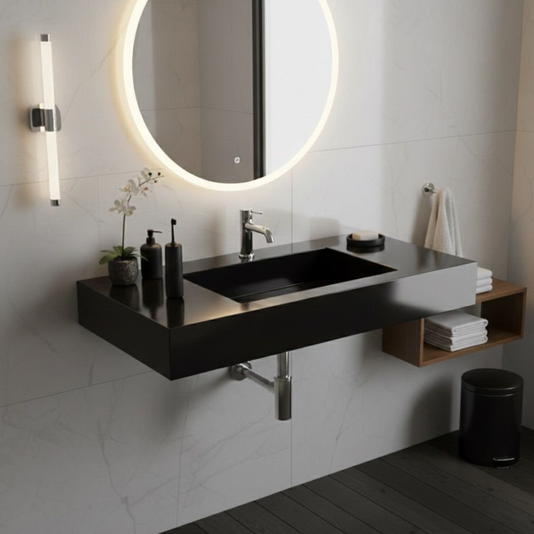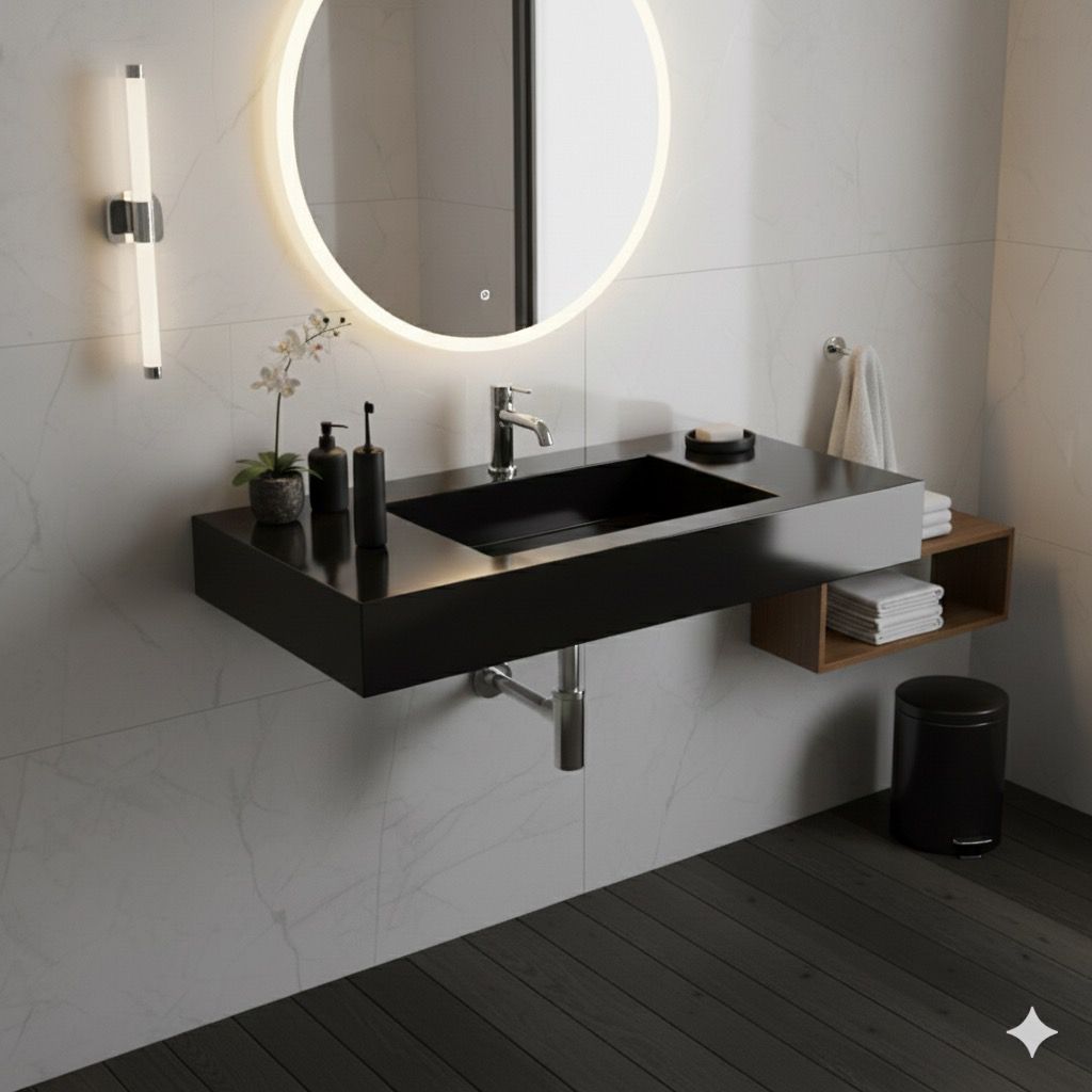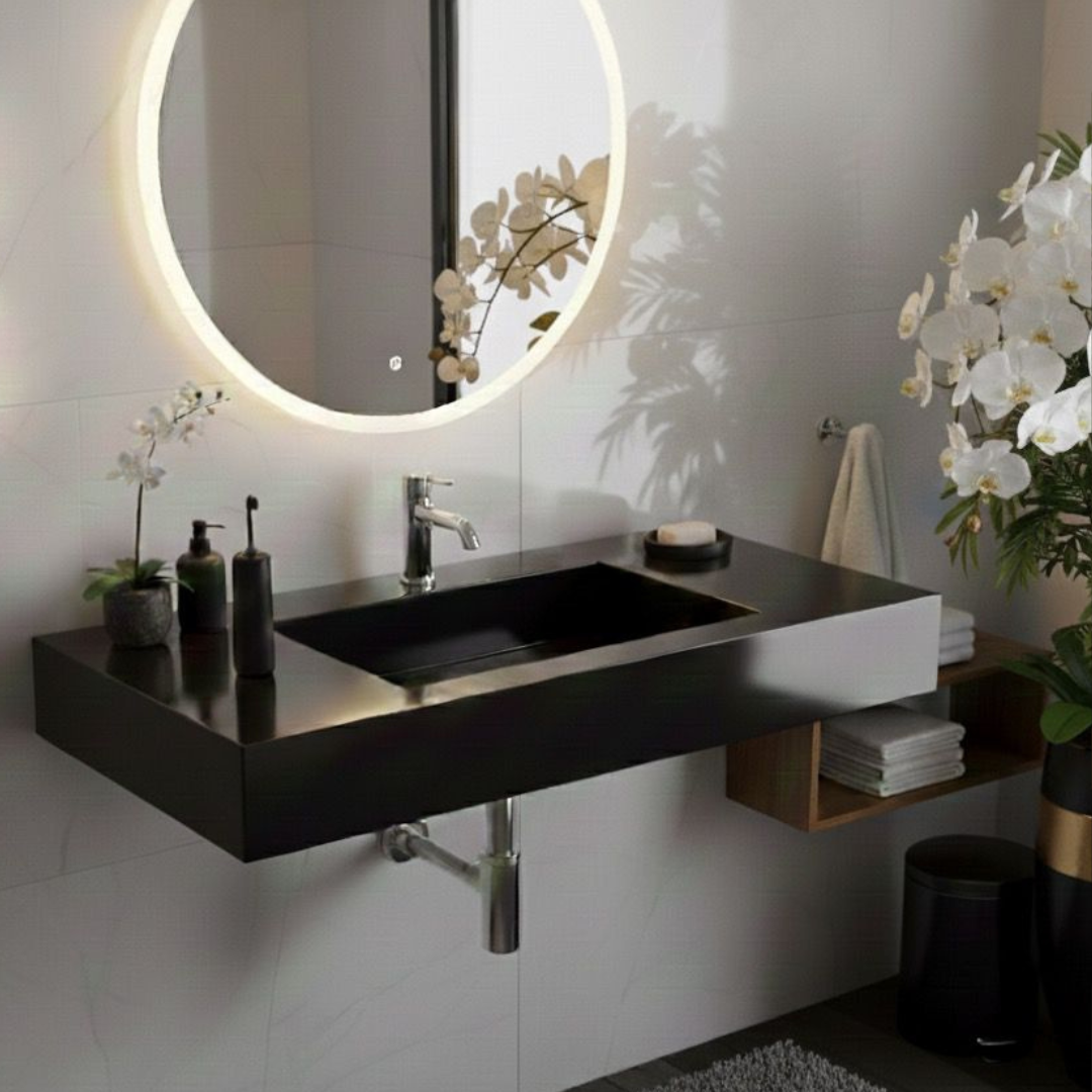 Transforme seu ambiente com uma cuba esculpida em porcelanato Premium, fabricada com acabamento profissional e detalhes superiores.