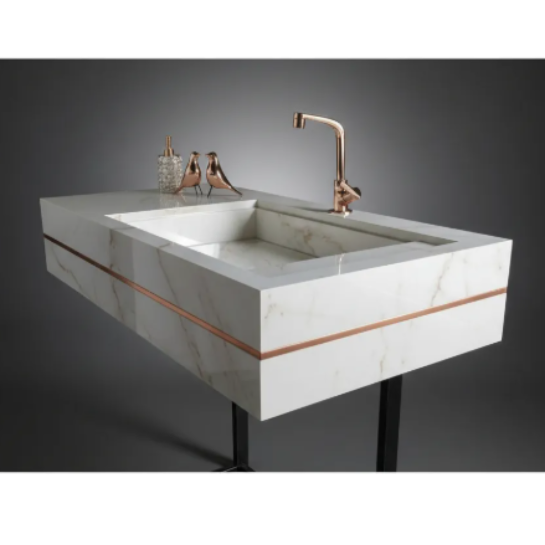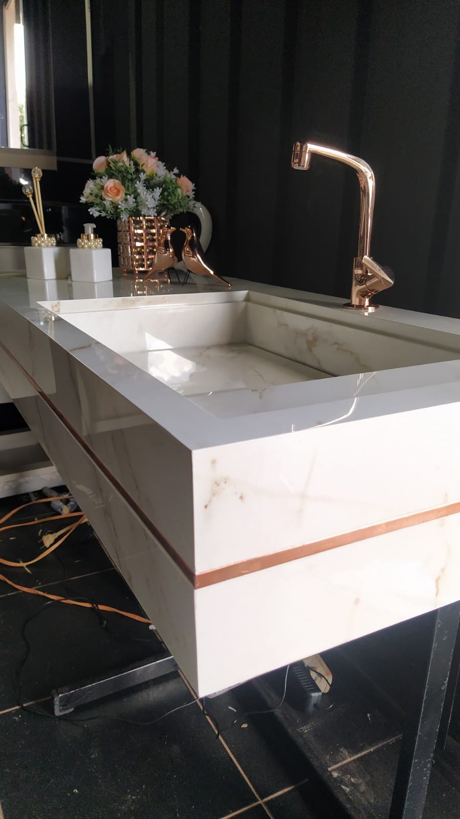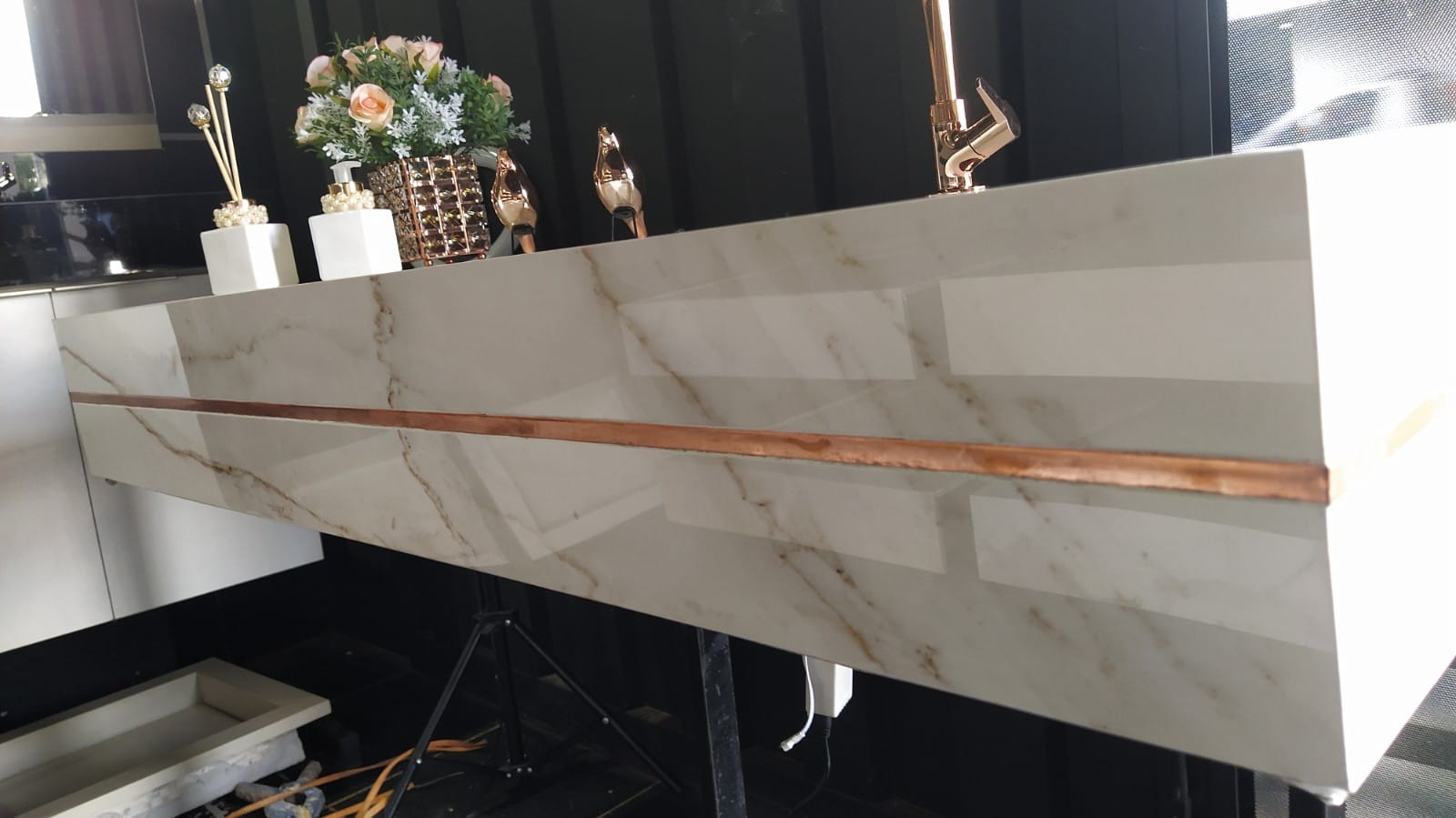 Cuba Premium Com Perfil Metalico 1,00x45x10 Calacata Rosê Polido Com Perfil Rosê