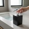 Dispenser em lamina sinterizada com frasco de 100 ML , para adcionar sabonete liquido, creme entre outros. o dispenser mede 10 cm de altura por 8 cm de largura.( medida da lamina sinterizada ) considerar mais 5 cm do Pump