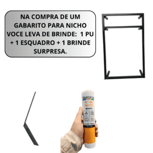 Este gabarito é feito em metalon 15×15 na chapa 18 mm ,tem medida fixa de 30,05 cm de largura por 50 cm mais ou menos, com ele você poderá fazer nichos com 30 cm de altura por 50 cm de comprimento até 1,15 testados nele, usando sua base de esquadro, o seu objetivo é acelerar o processo de montagem do quadro do nicho, em algumas lives já chegamos a montar mais de 30 quadros de nichos em menos de 2 horas, basta deixar todas as peças já cortadas.