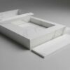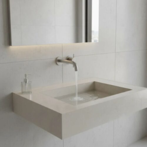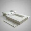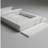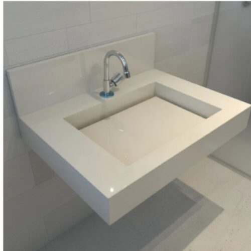 a cuba esculpida possui 60 cm de largura, 45 cm de profundidade e 10 cm de altura ( saia ) acabamento dos dois lados, podendo ser usado tanto numa parede direita ou esquerda, dois Rodopias ( frontão ) de 15 cm esculpidos e fechado dos dois lados. Acompanha tampo removível.