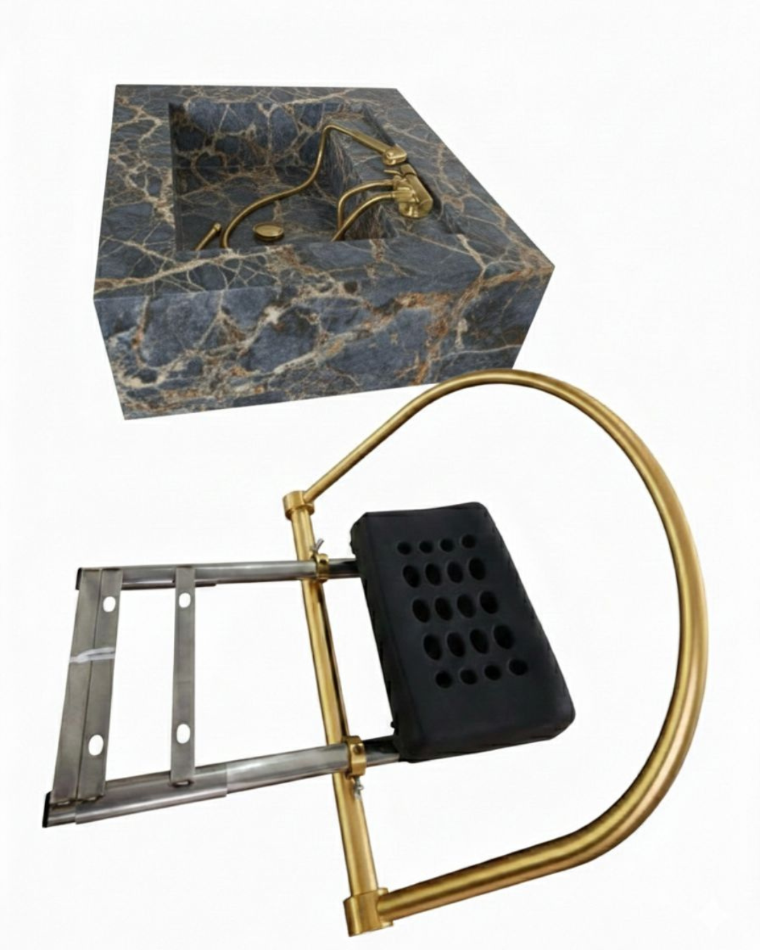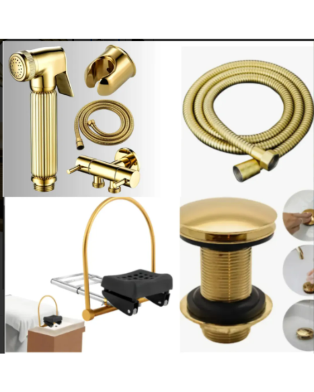 Anuncio referente : uma Cuba Esculpida Head Spa Para Terapia Capilar 76x65x23 + 1 Engate Mangueira Flexível Banheiro 120cm Dourado Ouro Luxo + 1 Ducha Higiênica Dourado Brilhante Registro Metal com 2 Saídas + 1 Equipamento Para Salão Lavatório Almofada Circulação De Água + 1 Válvula Click Enantes Ouro Brilhante.