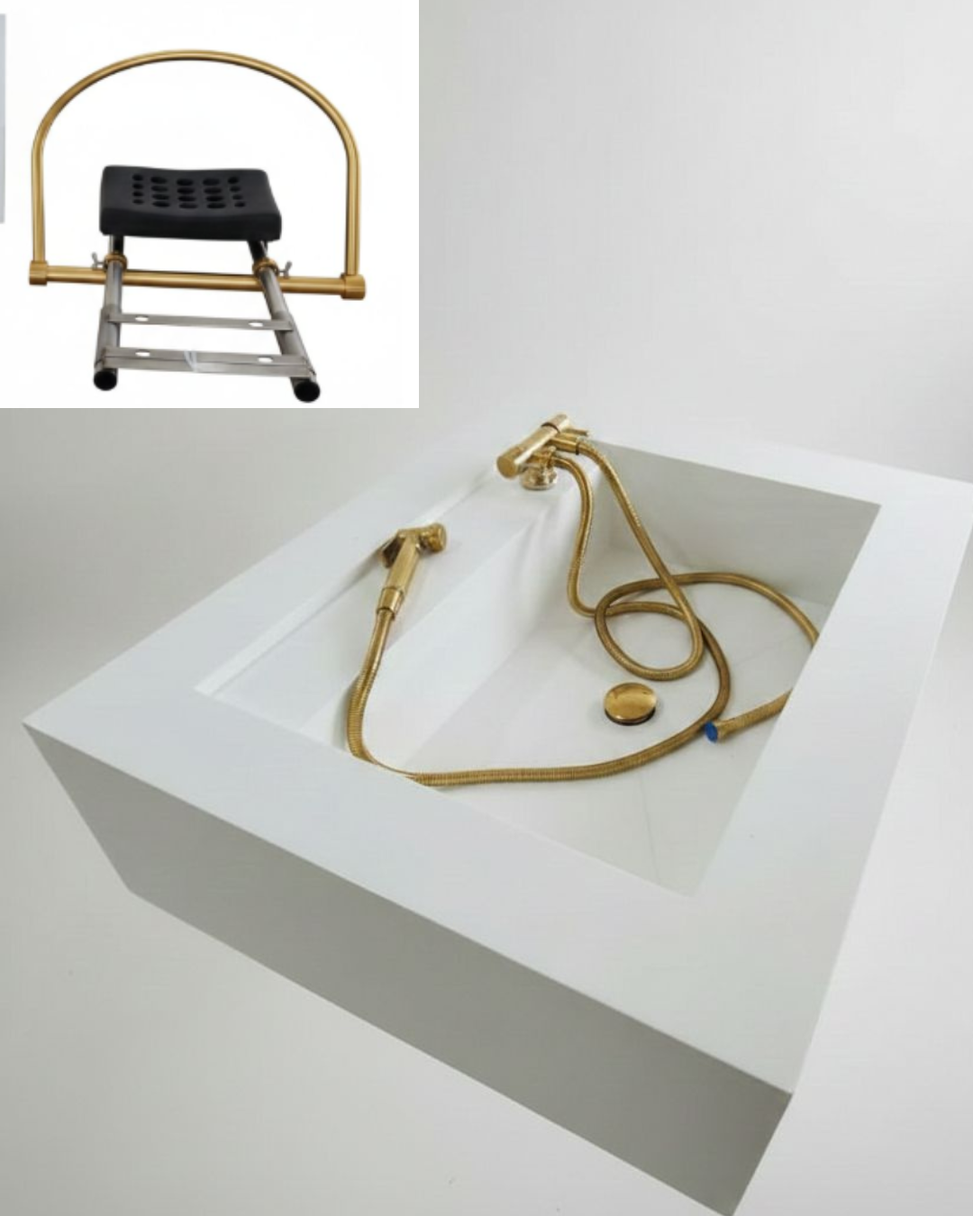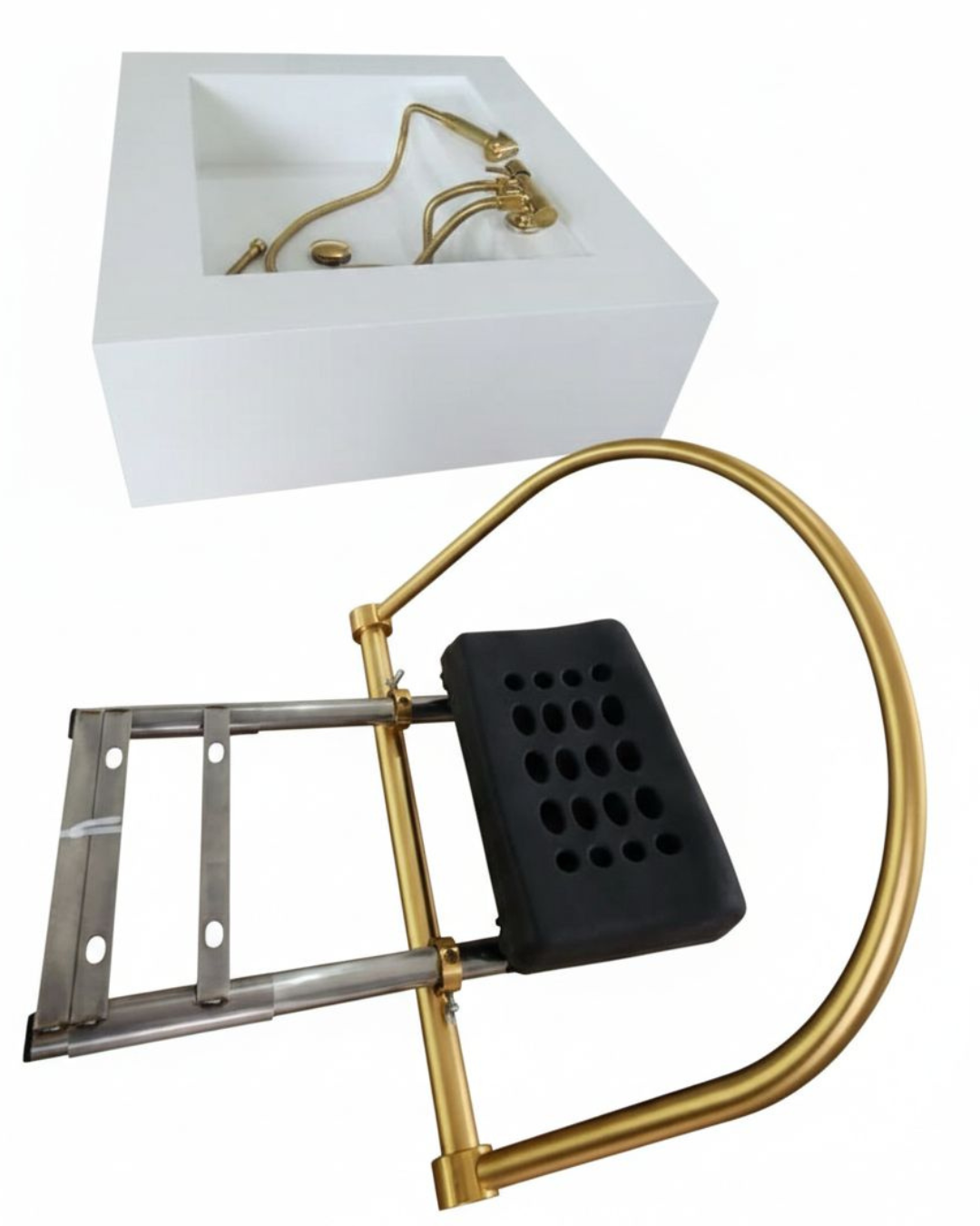 Anuncio referente : uma Cuba Esculpida Head Spa Para Terapia Capilar 76x65x23 + 1 Engate Mangueira Flexível Banheiro 120cm Dourado Ouro Luxo + 1 Ducha Higiênica Dourado Brilhante Registro Metal com 2 Saídas + 1 Equipamento Para Salão Lavatório Almofada Circulação De Água + 1 Válvula Click Enantes Ouro Brilhante.