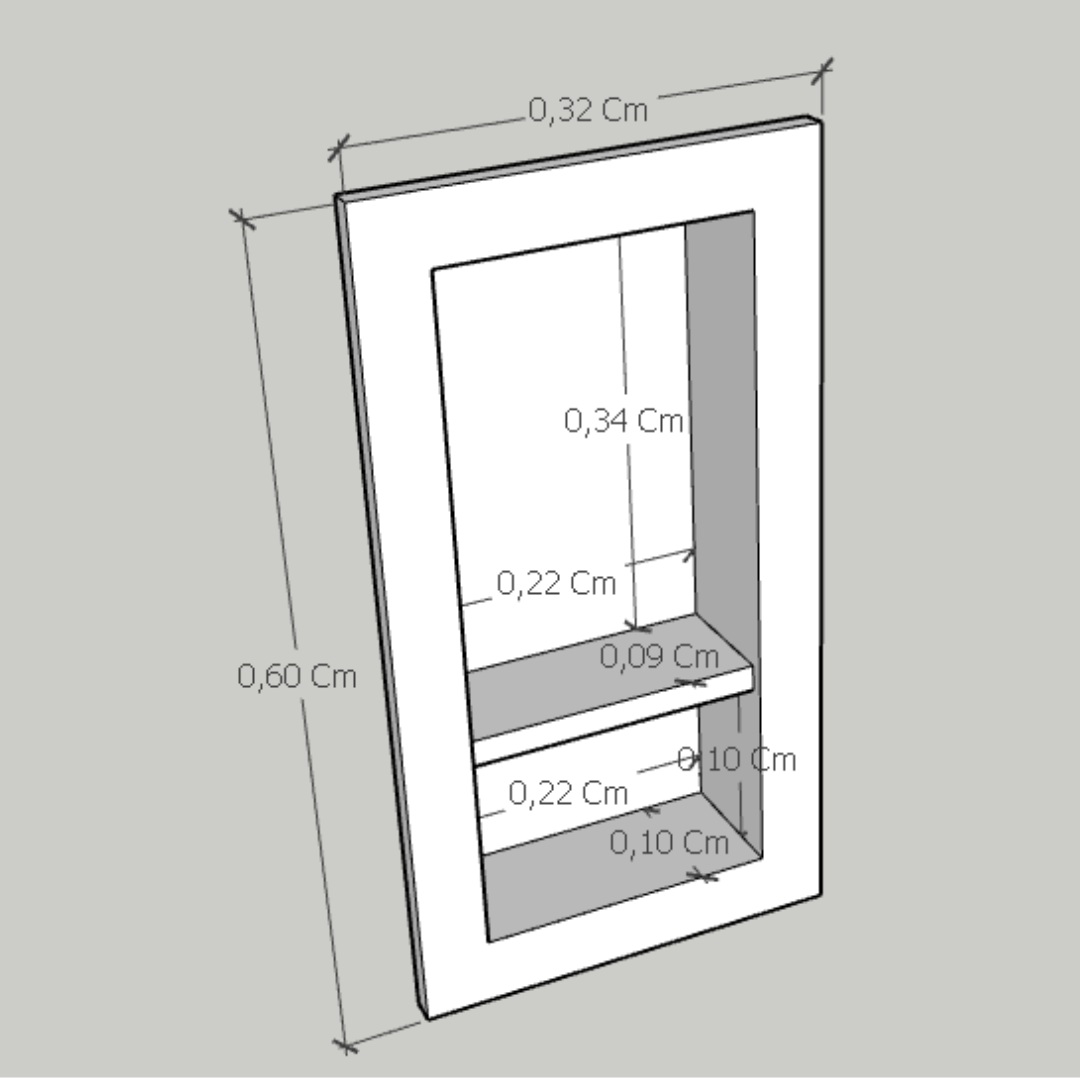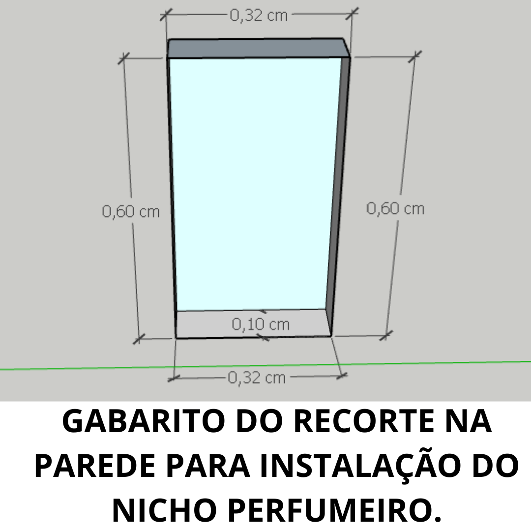 Nicho perfumeiro Borda quadrada com corte de canto 60x32x 0,10 medidas externa, 50x22x10 medida interna, cor: calacata polido.